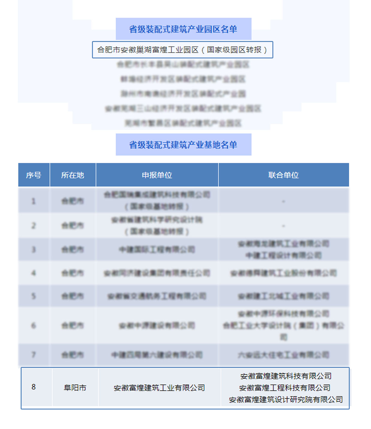 富煌工業(yè)園成功入選省級裝配式建筑產(chǎn)業(yè)園區(qū),旗下三家公司入選省級裝配式建筑產(chǎn)業(yè)基地名單