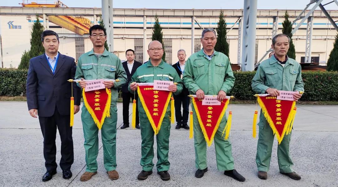 近日,在安徽恒德智能制造有限公司晨會上,恒德公司對近期在“降本增效”和“質(zhì)量月”活動中取得突出成績的先進集體及先進個人進行現(xiàn)場表彰獎勵。晨會特別邀請了安徽富煌鋼構(gòu)股份有限公司副總裁、總工程師龐京輝,安徽富煌建設(shè)有限責任公司審核中心主任黃志華,深圳財智菁英管理咨詢公司劉耿老師等相關(guān)領(lǐng)導出席。會議由富煌鋼構(gòu)總裁助理秦學東主持。