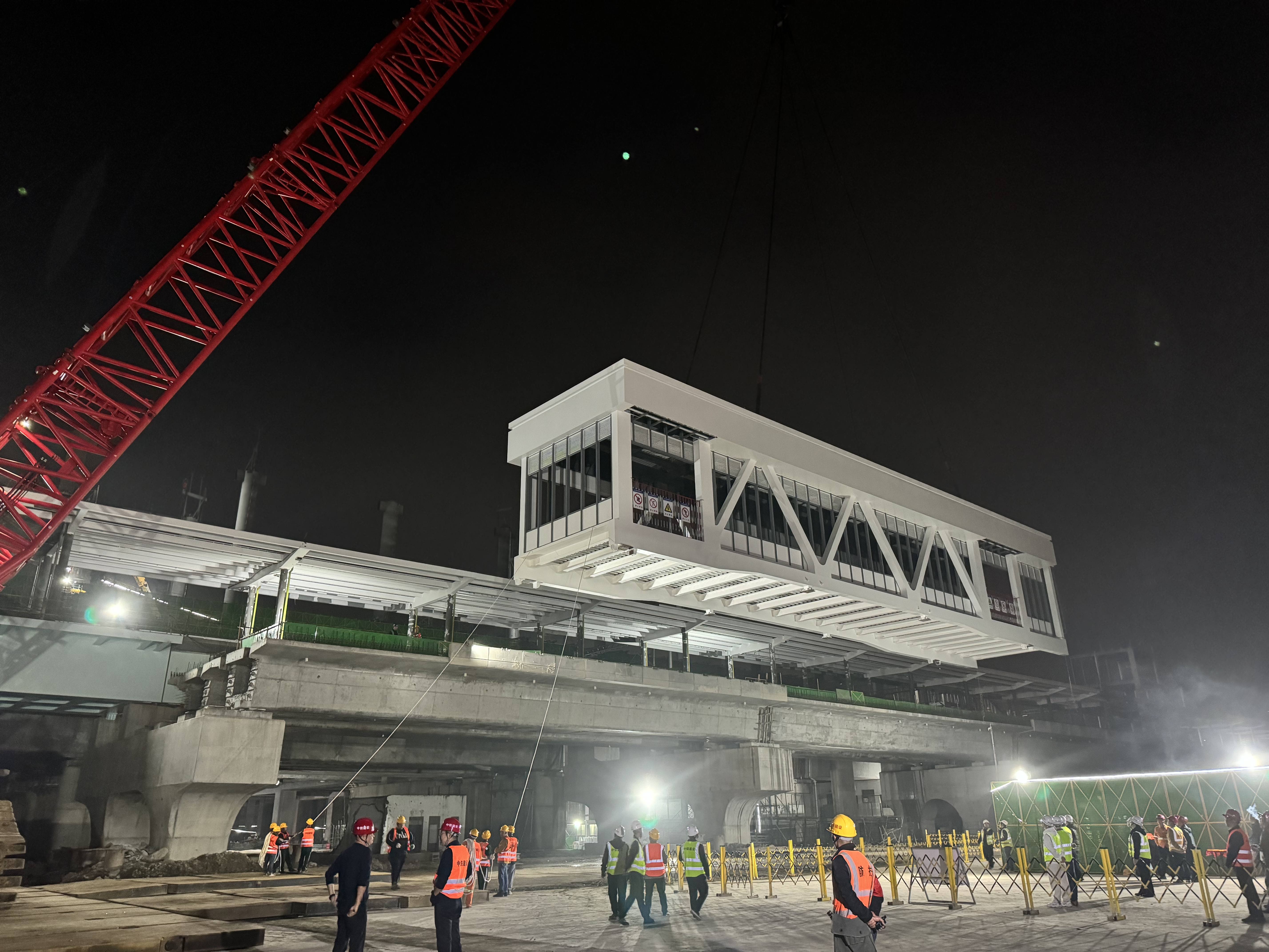 12月14日,由安徽富煌鋼構(gòu)股份有限公司承建的溫州北站鋼結(jié)構(gòu)項目迎來重大突破,一座長43.5m、寬7m、高9.2m,重達(dá)256.3t的天橋拔地而起,使溫州北站四、五站臺高架站房連成一片整體。