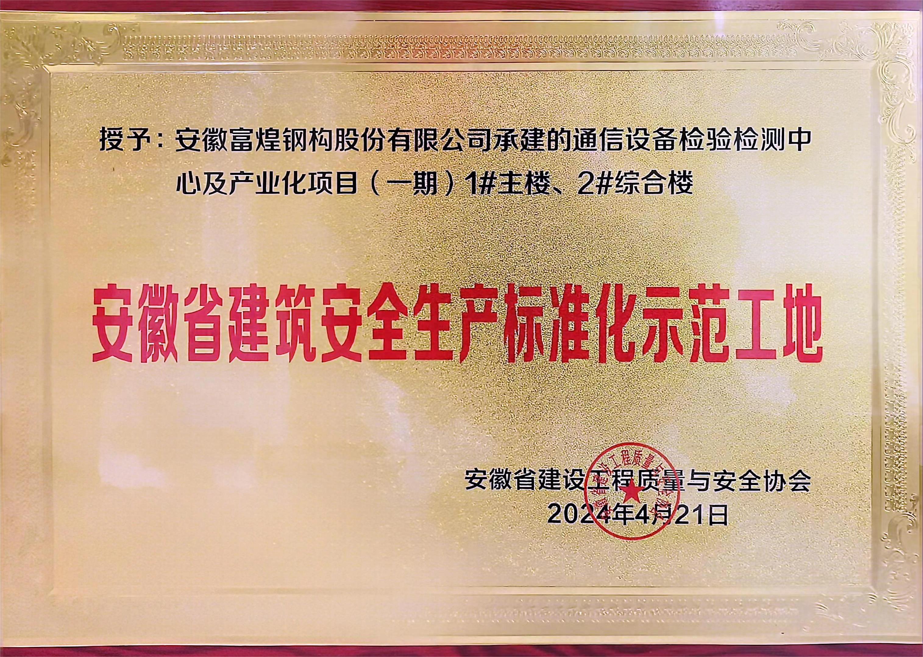 喜報|富煌鋼構(gòu)一項目榮獲“安徽省建筑安全生產(chǎn)標(biāo)準(zhǔn)化示范工地”稱號