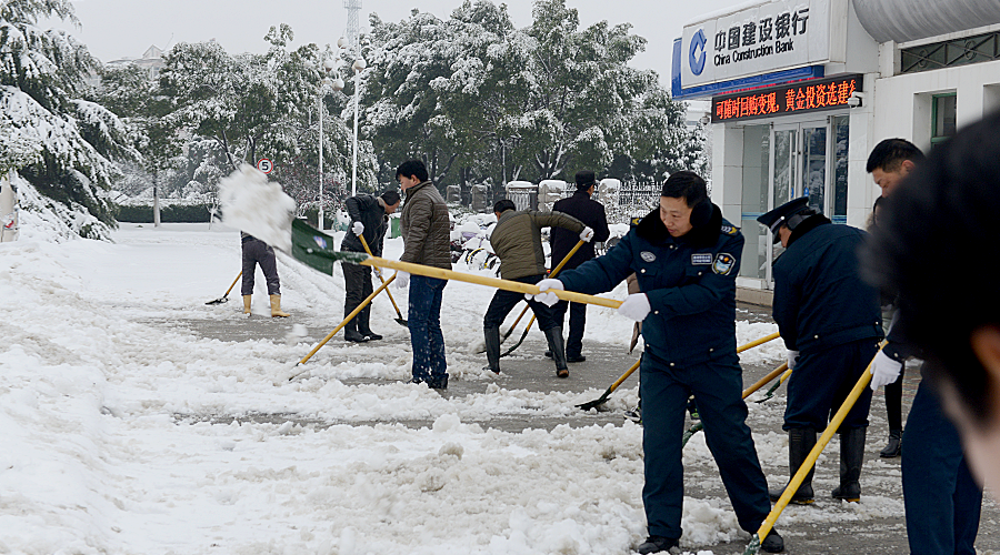 早上8點,員工們不畏嚴(yán)寒、冒著大雪準(zhǔn)時來到公司。在領(lǐng)導(dǎo)的帶領(lǐng)下,員工們開始揮舞著鐵鍬對集團附近以及路上的積雪和結(jié)冰進行清掃,大家你追我趕,齊心協(xié)力,配合默契,鏟的鏟、推的推、掃的掃,干的熱火朝天,不亦樂乎。忙碌的身影構(gòu)成了一道亮麗的風(fēng)景線。雖然室外溫度很低,但大家勞動的熱情和團結(jié)的力量讓這個冬日變得格外溫暖。