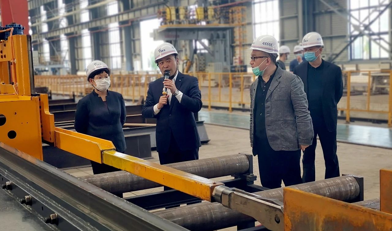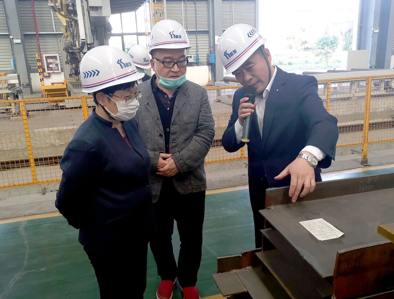 余強總工程師、項婷婷處長重點參觀了富煌鋼構(gòu)裝配式鋼結(jié)構(gòu)建筑智能制造基地,全面了解了企業(yè)當前的復工復產(chǎn)情況,包括車間內(nèi)抗疫采取的具體措施、管理人員工作方式、生產(chǎn)效率、所應(yīng)用的信息化技術(shù)等狀況,富煌鋼構(gòu)副總裁沈萬玉詳盡地介紹了目前公司的產(chǎn)銷情況、產(chǎn)業(yè)化工人的生活與工作情況、在現(xiàn)場所采取的具體防護措施,著重匯報了數(shù)字化H型鋼、箱型鋼二次加工線的生產(chǎn)流程,如何通過合理優(yōu)化設(shè)備布局提升生產(chǎn)線效率,強調(diào)了定長切割、全自動三維成孔、機械式銑邊、鎖口等關(guān)鍵工藝在高精度裝配式鋼結(jié)構(gòu)構(gòu)件加工制作過程中的重要性;沈萬玉副總裁表示,在當前全面復工復產(chǎn)的產(chǎn)能下,富煌鋼構(gòu)有信心確保所有承建的裝配式鋼結(jié)構(gòu)建筑產(chǎn)品順利供應(yīng),響應(yīng)各級政府號召,大力推進安徽省裝配式建筑發(fā)展。