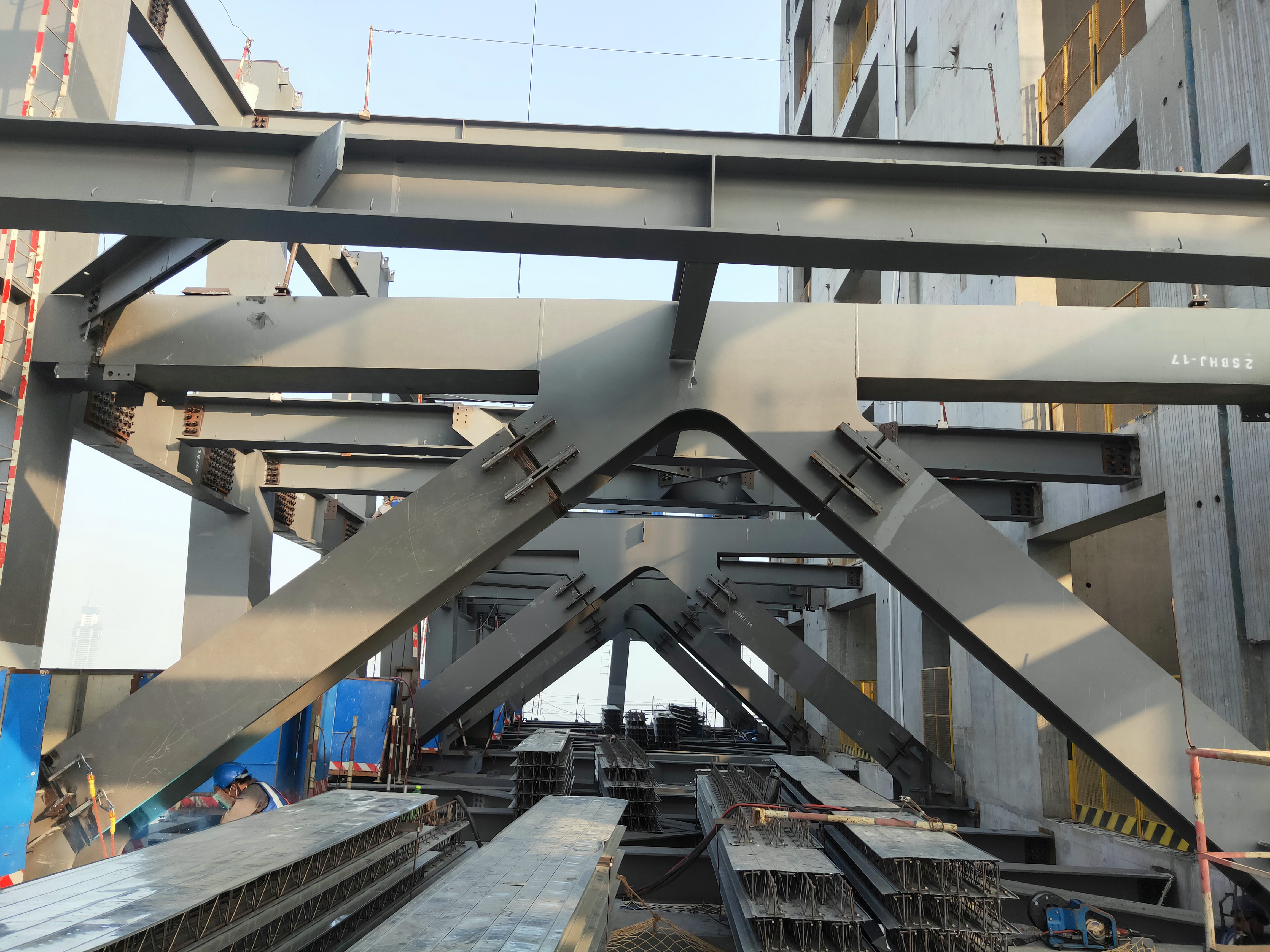 2019年11月10日,項目完成了第二個44層伸臂桁架層節(jié)點(diǎn);