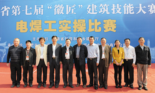 10月23日上午,由安徽省住房和城鄉(xiāng)建設(shè)廳主辦,合肥市城鄉(xiāng)建設(shè)委員會、富煌鋼構(gòu)股份有限公司共同承辦的安徽省第七屆"徽匠"建筑技能大賽電焊工實操比賽在富煌焊接研究所隆重舉行。省住房和城鄉(xiāng)建設(shè)廳副廳長曹劍、建筑市場管理處處長陳幼年、調(diào)研員張行遠(yuǎn)、盛世福,合肥市城鄉(xiāng)建設(shè)委員會建筑業(yè)管理處處長王榮村,富煌鋼構(gòu)總經(jīng)理戴陽、副總經(jīng)理曹玉林、總經(jīng)理助理劉宏、沈萬玉等省市及公司領(lǐng)導(dǎo)親臨大賽現(xiàn)場觀摩。