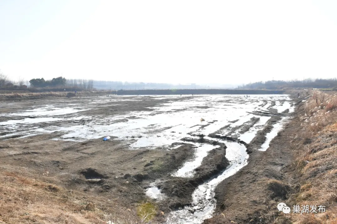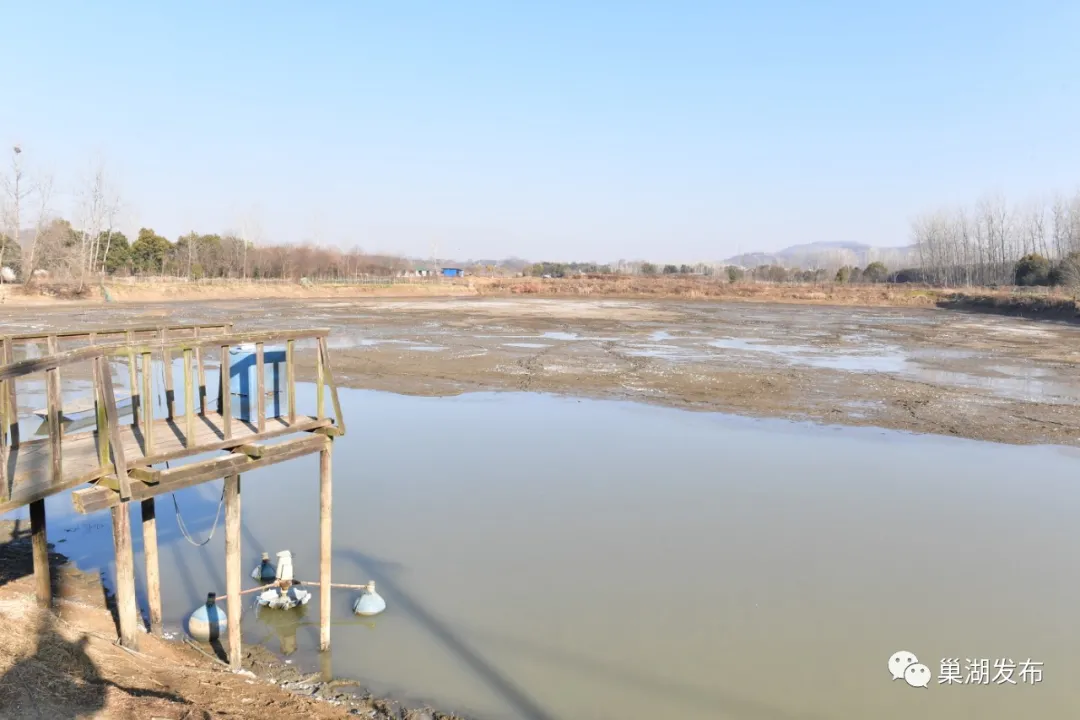 眼下正值隆冬季節(jié),巢湖大地寒風(fēng)微拂,陽(yáng)光和煦。黃麓鎮(zhèn)合群村鮰魚養(yǎng)殖產(chǎn)業(yè)園位于該村落山里自然村邊,在一口面積約20多畝的人工池塘里,合群村4位村民正站在已經(jīng)抽干的塘㡳,手拎塑料桶邊走邊播撒生石灰。